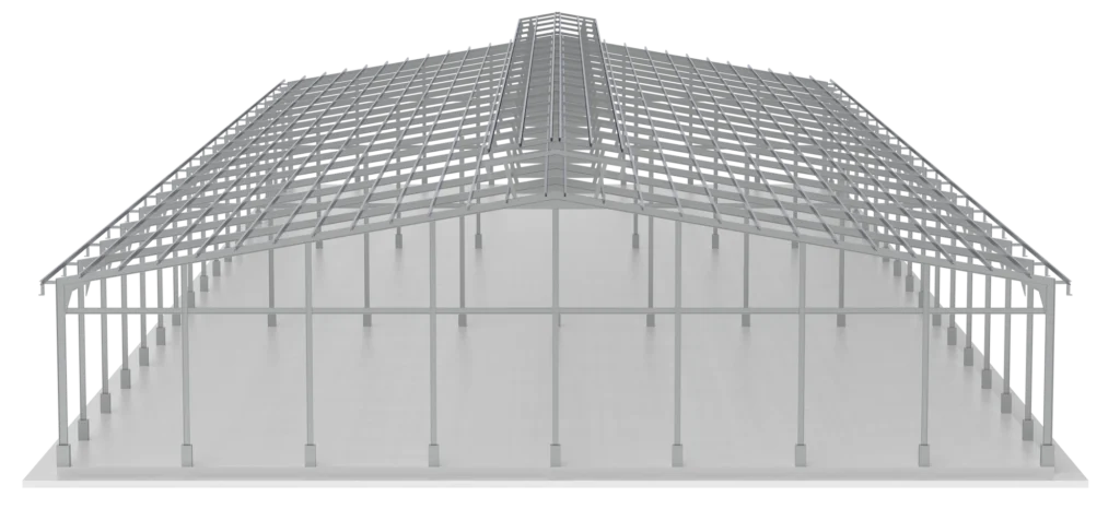Galpones Parabólicos: Estructuras livianas para cubrir grandes superficies de hasta 10,000 m² sin columnas intermedias.